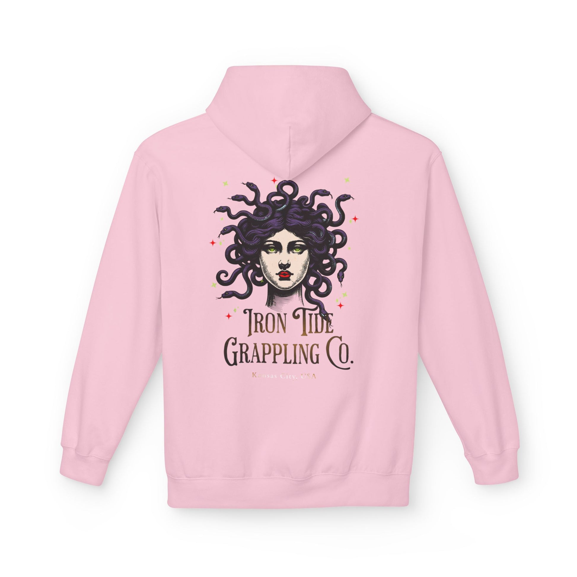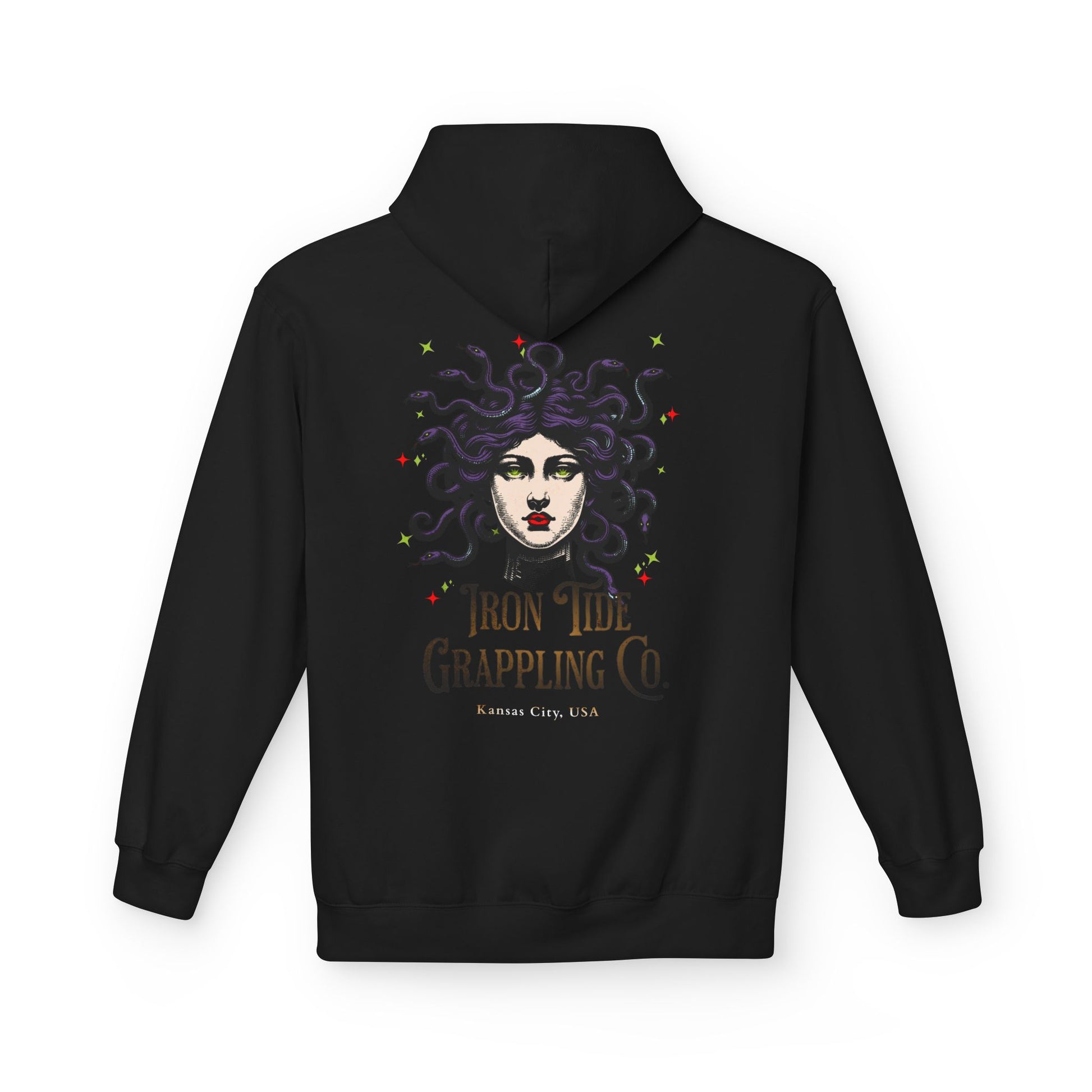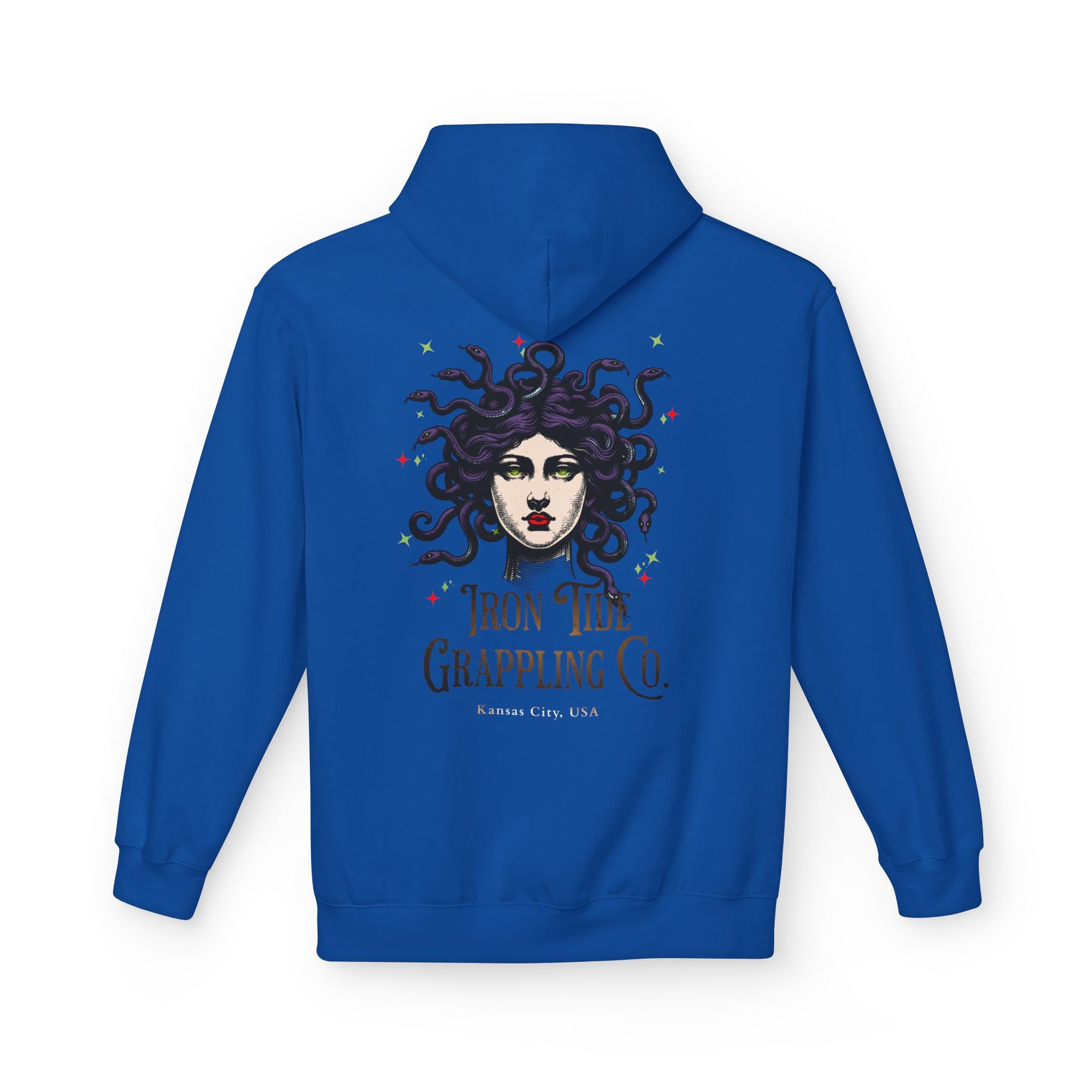 The Iron Tide Grappling “Medusa” Hoodie brings the iconic Gorgon artwork into a clean, everyday essential built for warmth, comfort, and presence. Featuring the bold Medusa graphic on the back and the Iron Tide anchor crest on the front chest, this hoodie blends myth, grit, and fight-culture design in a way that only Iron Tide can.